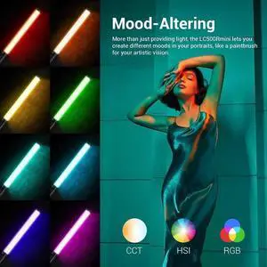 LC500R Mini Handheld RGB Tube Light, 2500K-8500K RGB Stick Light with Barndoor&Soft Diffuseur, 20W 360°Full Color CRI 96+ 15 FX Effects LED Lighting Wand with APP Control