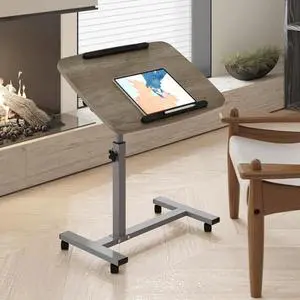 Overbed Bedside Desk Mobile Rolling Laptop Stand Tilting Overbed Tae with Wheels Height Adjustae Tray Tae for Laptop Bed Sofa Side Tae (Rustic Brown)