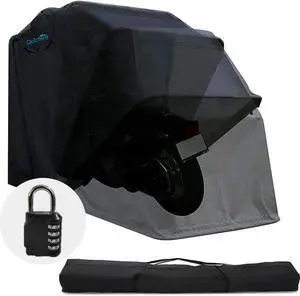 136"x 54" Motorcycle Storage Shelter with Code Lock & Carry Bag Heavy Duty Vehicle Shed Cover Garage Tent with 2 Roll-Up Side Windows - Black