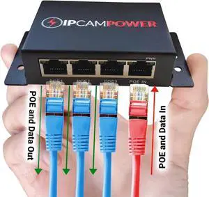 POE Powered 3 Port Switch & Network Cat5 Cat6 Midspan Cable Range Extender Pass Through Repeater for IP Cameras - Gigabit 10/100/1000