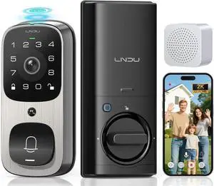 Smart Keyless Entry Door Lock, AL502 Security Camera Door Bell Deadbolt, Built-in WiFi, Support APP Control, Fingerprint, Alexa, Motion Detection, Video Record, BHMA, IP65, with Battery, Chime