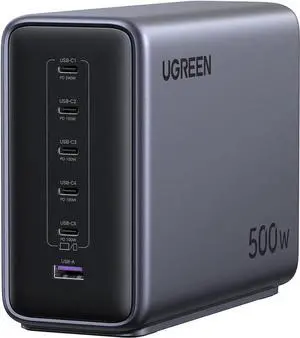 Nexode 500W GaN Fast Charging Station - 6 Ports USB-C & USB-A, 240W Single Port, Smart Temperature Control, Space-Saving Design, for Laptops, Phones, and More