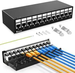 12Port Patch Panel CAT6A Keystone Patch Panel Shielded Network Patch Patch with Smart Cable Management for Home/Office Network (1U 12Port, CAT6A)
