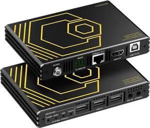 HDMI KVM Extender USB Uncompressed 4K 60Hz HDR Single Over Cat5e/6 up to 300ft, 3 Ports USB2.0 Hub POE+RS232+EDID+3.5mm Stereo Audio and Microphone