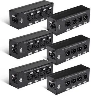 6 Pack 4 Channel 3 Pin Multi Network XLR Cable Breakout 3 Pin XLR Male and Female Over RJ45 Ethercon Cable Multi Extender for Stage Lighting and Home Recording Studio Compatible