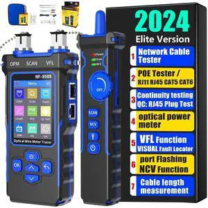 NF-8508 Network Cable Tester with 7 wavelength Optical Power Meter VFL,RJ11 RJ45/PoE Tester/CAT5 CAT6/NCV with 10mw Visual Fault Locator,Network Tool with Lithium Battery