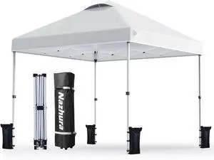 10' x 10' Pop Up Canopy Tent with Sand Weight Bag, Freestanding Sun Shelter for Picnic and Camping, One Person Setup and Height Adjustable (White)
