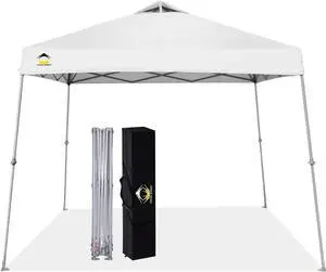 9x9 Pop Up Canopy Tent Slanted Legs for Added Stability - Beach Tent Sun Shelter for Outdoor Shades - Canopy with 11x11 Base, with Carry Bag, White