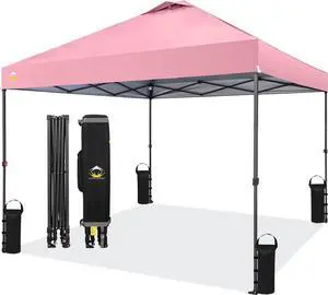 10x10 Pop Up Canopy Tent - Patented Center Lock One Push Instant Outdoor Canopy Beach Tent with STO-N-Go Bag 8 Stakes & 4 Sand BagsPink
