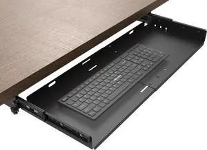 Sliding Keyboard Tray Under Desk, Pull-Out Keyboard and Mouse Tray, 27 x 9.8 inches Large Platform Slide-Out Computer Drawer for Typing, Metal, Black