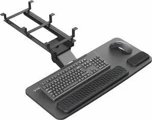 Premium Adjustable Computer Keyboard and Mouse Platform Tray, Ergonomic Under Table Desk Mount Drawer with Padding, Black, MOUNT-KB27P-B