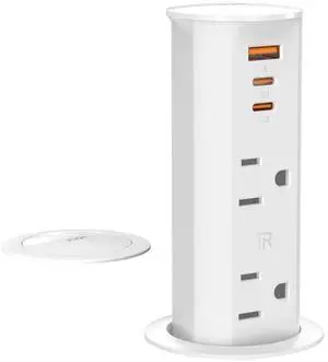 2 inch Space Saver Pop Up Outlet for Countertop with PD20W USB Ports,2 Outlets Tamper Resistant,Splashproof Socket,Desk Power Grommet Home Office Kitchen White (ETL Listed)