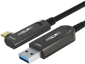 USB A to C Fiber Optic Extension Cable 15M/50FT, Right Angle 3.2 10Gbps Long Distance Active Optical for VR/AR, Quest2, Webcam, Camera, Mini PC and More