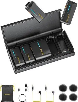 iRay DW40 Wireless Lavalier Microphone with Four Transmitters One Charging Case Support AI Denoise, 48kHz/24bit Recording for Video Vlog, Interview, Live Streaming, Podcasting-Black