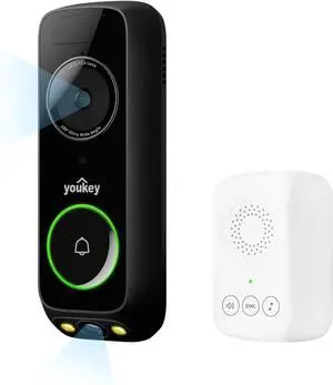 DB312 Doorbell Camera Wireless with Chime, No Monthly Fee, 2K Video Doorbell with Head-to-Toe View, Package Detection, 2.4/5GHz WiFi-6, Two-Way Talk, Color Night Vision, Battery/Wired Powered