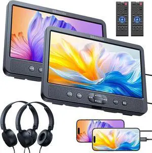 10.1" Dual Car DVD Players with HDMI Input, Headphones, Mounting Brackets, Headrest DVD Players for Car Support USB/SD Card, AV in/Out, Last Memory, Play A Same or Two Movies, No Battery