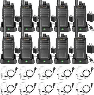MC-528 10 Pack Walkie Talkies for Adults, Two Way Radios Long Range, 2 Way Radio with Earpiece, 1200mAh Battery, Rechargeable with Charging Base Hands Free, for Restaurant Business School