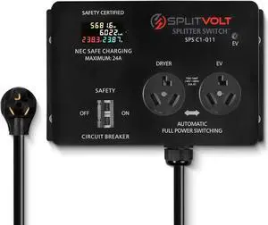 NEMA 10-30, 240V, 24 Amp Splitter Switch - Save Thousands on Home Electric Vehicle Charging (EV) Install, cETLus Certified, Charge Two EVs, Plug and Play