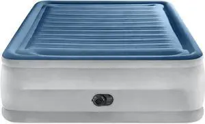 : Dura-Beam Deluxe Comfort-Plush Air Mattress - 22" Queen Blue - Built-in Electric Pump, Durable Fiber-Tech, Carry Bag Included, 600lb Capacity