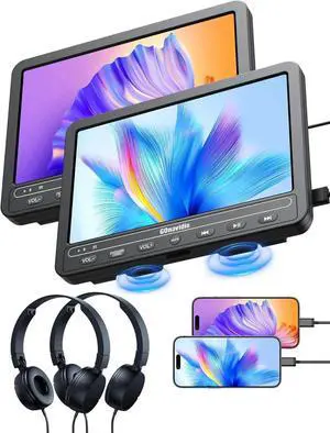 10.1" Portable DVD Players for Car with HDMI Input, 5-Hour Battery, 2 Headphones, Dual Car DVD Players for Back Seat Support USB/TF Card, Last Memory, Play Same/Different Movies, Region Free