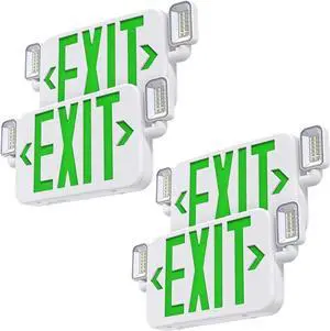 Led Combo Emergency Exit Sign Light with Two Adjustable Head Lights and Backup Battery,US Standard Green Letter Commercial Emergency Exit Lighting,UL 924,120/277V (4Pack)