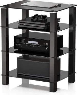 4-Tier Media Stand Audio/Video Component Cabinet with Glass Shelf for/ Tv/Xbox One/ps4 AS406002GB