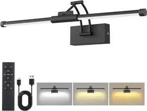 24 Picture Lights for Wall Battery Operated, Wireless Picture Lights with Remote, Recharge Wall Light 3000K/4000K/6000K Dimm, Lighting for Paintings Frame Gallery Dboard Light, Black