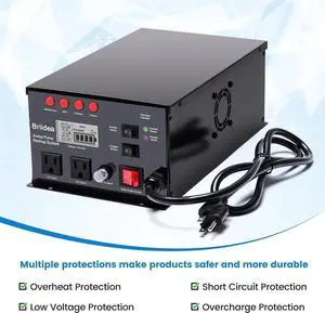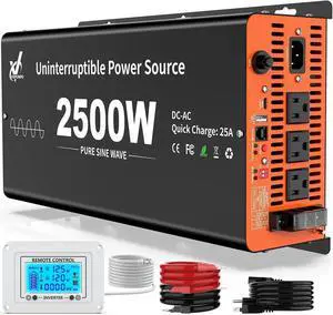 2500 Watt Sump Pump Battery Backup System, Pure Sine Wave Output, Professional Backup System in The Event of a Power Outage, Remote Controller with LCD Screen, Automatic Grid and Battery Switchover