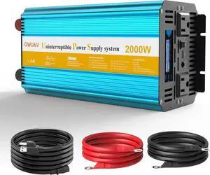 2000W Sump Pump Battery Backup, Pure Sine Wave Power Ouput with Smart Multifunction Screen, Professional Backup System for Basement Outage, AutoSwitching Grid and Blue -