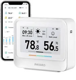 WiFi Thermometer Hygrometer, Temperature and Humidity Sensor with Weather Station, 9-in-1 IBS-TH5 Electronic Ink Display, 2 Years Free Data Storage Export, Remote Monitor for Room White -