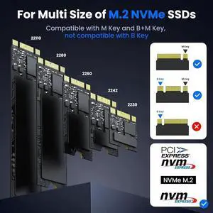 M.2 NVMe SSD Cloner, Dual Bay Enclosure Duplicator for M-Key PCIe NVMe/AHCI SSDs, 20Gbps USB C 3.2 GEN2x2, 16TB Capacity -