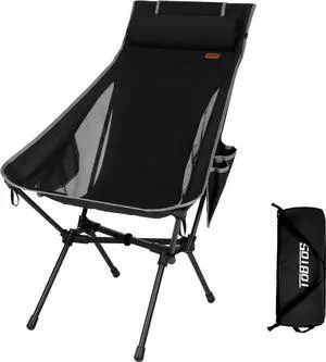Portable High Back Camping Chair, Support Heavy Duty 440 lbs, Compact Folding Chair with Detachable Pillow for Camp, Hiking, Backpacking (Black)