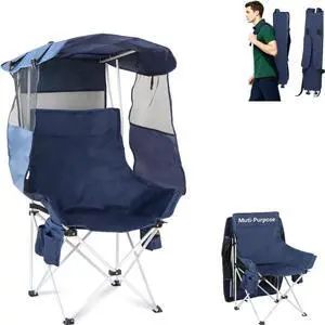 Folding Camping Chairs Canopy Outdoor: Sports Portable Beach Chair with Canopy-Lawn Beach Chairs with Umbrella for Adults-Camping Chair with Shade for Fishing Camp Heavy Duty (Regular, Navy Blue)