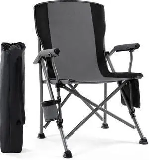 Camping Chair with Padded Hard Armrest, Sturdy Folding Camp Chair with Cup Holder, Storage Pockets Carry Bag Included, Support to 400 lbs