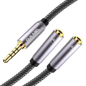Headset Adapter 3.3 Feet 3.5mm Audio Jack Y Cable Headphone Adapter 1x 3.5mm Female to 2X 3.5mm Male Headset Adapter for Double-Jacks PC