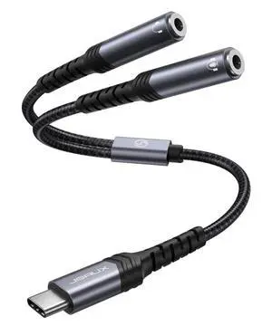 USB C to Dual 3.5mm Female Headphone Splitter, Type C to Dual 3.5mm Female Aux Y Jack Headphone Adapter Compatible with iPhone, Galaxy, Pixel, iPad Pro-Grey