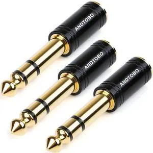 1/4''(6.35mm) Male to 1/8'' (3.5mm) Female Stereo Audio Jack Pure Copper Adapter for Headphone, Amp, 3 Pack-Black