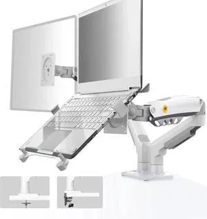 Laptop Mount with Adjustable Tray for 10-17Notebook, Full Motion Arm with VESA Plate for 17-30Monitor,Clamp-on Grommet Mounting F160-FP (White)