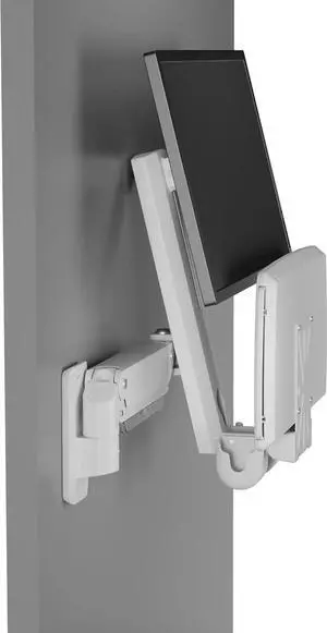 MED02 Medical Wall Mount Workstation with Folding Keyboard Tray | Large Sliding Mouse Pad | Height Adjustment Space Save Folding Design for 17"-35" Screen | Scanner Holder