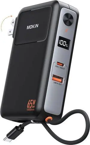 Portable Charger 3 in 1, 10000mAh Power Bank Built in Cable and AC Wall Plug 65W, Phone Battery Pack Fast Charging 35W Max, USB C Travel Chargers for iPhone 16 15 Series, Samsung, MacBook, Laptop
