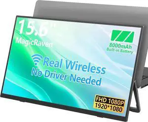 8000 mAh Wireless Portable Monitor, 15.6" 1080P IPS Laptop Screen, Second Computer Gaming Display with Speakers, Travel Monitor for Windows/Mac/Android/iOS/Gaming Console