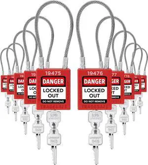 Lockout Tagout Steel Cae Locks with Keys,10 Red Keyed Different Electrical Lockout Padlock Set, 2 Keys per Lock, OSHA Coliant, Premium Grade