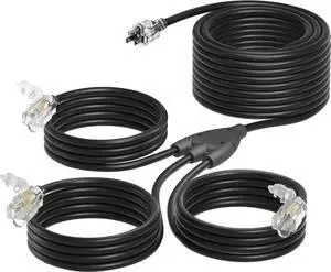 42FT Outdoor Extension Cord with Multiple Outlets, 1 To 3 Splitter Total 42FT(Max Length 30FT From End End), 16/3 SJTW Split for Halloween And Christmas Decoration, ETL Listed