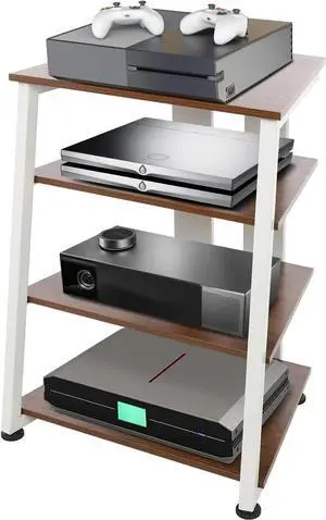 AV Media Stand, 4-Tier Multifunctional Modern Stereo Cabinet, Trapezoid Shape DVD Storage Rack, Audio Equipment Vertical Storage Shelf for TV Accessories, CD Changer, Receiver, Woofer (White)
