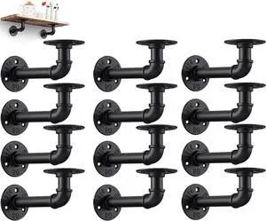 Industrial DIY Pipe Shelf Brackets,Vintage Black Iron Wall Mount Pipe Shelving Bracket, Rustic Home Pipe Shelf, 12 Pack