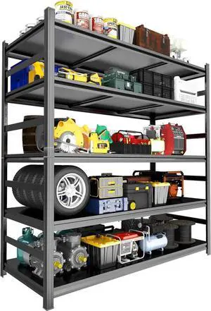 48" W Garage Shelving Heavy Duty, 3000LBS Storage Shelves, 5-Tier Adjust Metal Shelving, Garage Shelves Sturdy Industrial Shelf, Easy Assemble, 72" H x 48" W x 18" D