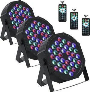 3 Pack LED Par Lights DJ Stage Light 7 Channel Par Lighting for Stage with Remote Control and DMX Control Sound Activated Uplights Party Lights for Christmas Music Party Disco Wedding (36 LED)