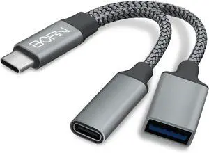 2-in-1 USB C to USB OTG Adapter and Charger Cable - 5V to 20V Input/Output PD Fast Charge Compatible with iPhone 17/16/15 Pro Max Galaxy S24 S23 S22 Pixel 9 8 7 iPad Pro MacBook Pro/Air