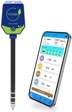 pH Moisture Meter Smart Soil Test Kit Garden Hygrometer Conductivity for Hydroponic 8 in 1 Farm EC Fertility Salt Sunlight Air Humidity Temp Tester -