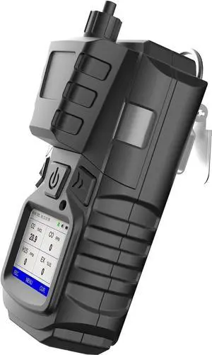 Gas Detector with Pump, 4 Monitor Multi CO EX O2 H2S Monitor, 3000mAh Rechargeable Calibration Kit, Portable LCD Display Clip Sewer Meter Black -